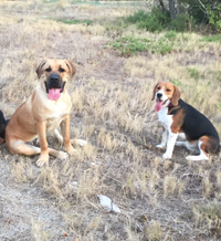 En mars 2016, j’adopte suite à la perte de notre chienne, deux chiots. Un beagle Kaloo et une Cane Corso Milka. Il ont 3 mois et sortent de leur élevage respectif. Entre eux, une belle relation se crée instantanément. C’est la première fois que j’ai 2 chiots en même temps et souhaite afin de ne pas faire d’erreurs, m’adresser à un professionnel. Je prends rendez vous avec un éducateur reconnu qui face à l’attitude de Milka m’annonce dés le premier cours que je suis l’heureuse propriétaire d’une future tueuse de chien, que son comportement de grognements face aux autres chiens en est la preuve. Aussi, dans une cours clause, il décide de la confronter à ses chiens et c’est la catastrophe, elle est encore plus craintive à l’issue de cette expérience traumatisante.