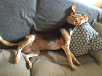 je vous envoie une photo de Pirate en pj et notre commentaire : Pirate a 17 ans ; il a été gardé à notre domicile l'été dernier par Mme Delmas pendant nos vacances.