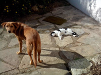 Nous avons alors eu la chance de tomber sur le site de Nathalie Delmas ; après un bilan réalisé de manière très sérieuse et professionnelle, elle nous a délivré de précieux conseils, grâce auxquels nous avons pu très rapidement améliorer notre comportement ; nous avons ensuite bénéficié de ses cours avec Minus, et, petit à petit, réussi grâce à cela à pouvoir vivre sereinement avec notre chien. Ainsi, nos randonnées, sources d’angoisses sont devenues de vrais bonheurs, Minus revient au rappel, ne poursuit plus ni les joggers, ni les cyclistes; notre quotidien domestique a également bénéficié des enseignements de Nathalie, puisque nous avons six chats, avec lesquels Minus vit en bonne intelligence, et ce en dépit de ses instincts de chasseur très présents.