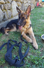 A la fin du mois de juin j'ai fait appel à Nathalie pour des cours d'éducation pour mon petit Marcus,un Berger Allemand âgé alors de 4 Mois. Lors de notre premier entretien, Nathalie a constaté quelques anomalies de comportement que personne n'avait soupçonnées auparavant. En effet, Marcus observait une petite crainte envers moi et qui, du coup, l'empêchait d'effectuer les rappels ainsi que de se rapprocher facilement de ses congénères. En fait, Marcus était trop travaillé dans la contrainte, et ne rencontrait pas suffisamment d'autres chiens.